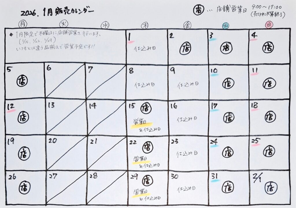・移動販売:販売予定カレンダーをご覧ください(毎月更新)